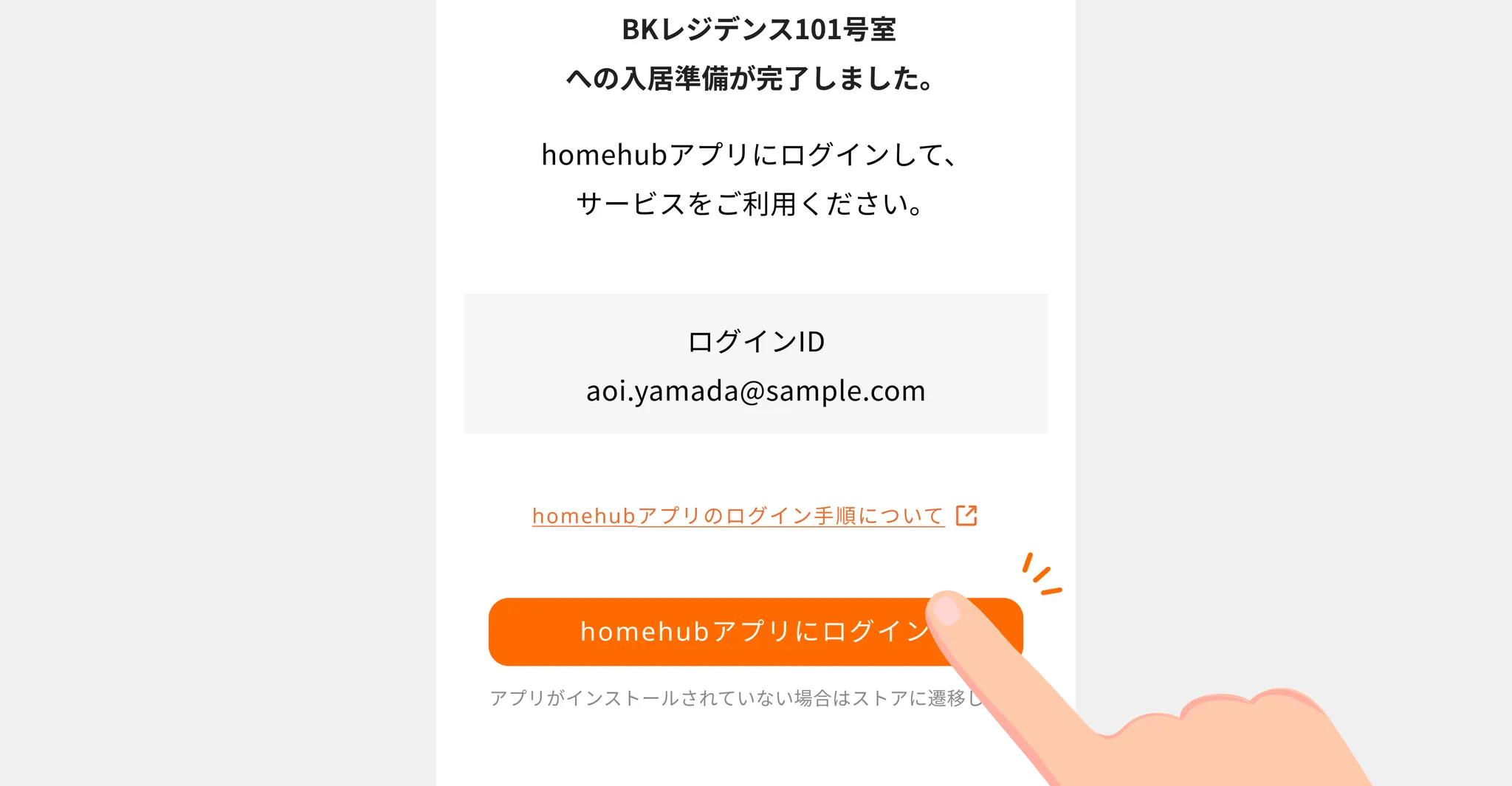 1. 完了画面の「homehubアプリにログイン」のボタンをタップします