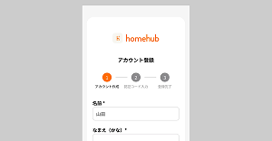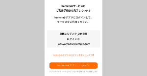 - 完了画面の「homehubアプリにログイン」のボタンをタップします